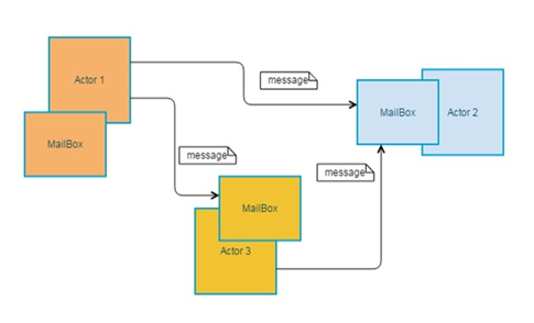 Actors are light weighted entities that perform small tasks. Each Actor maintains its state internally and interacts with other Actors via messages. All messages sent to an Actor are stored in its mailbox. Generally, Actors process messages in the order they arrive in the mailbox. Depending on the type of message Actors take appropriate steps. Intricate business functionality can be implemented by creating child actors and delegating sub tasks.