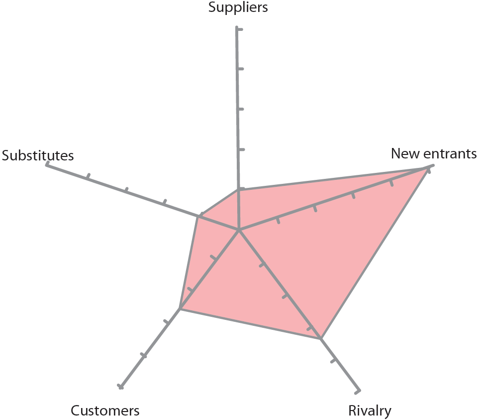 EA Team gathered all information via Interviews, Group Discussions, Fixed Questions, Scenario Questions. To help in suggesting the best solution, SWOT and five forces analysis was conducted. A sample view of five force analysis looks like: