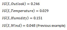 As we can see the highest Information Gain is given by Humidity. Proceeding in the same way with