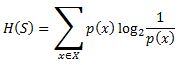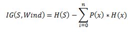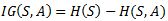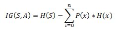 where IG(S, A) is the information gain by applying feature A. H(S) is the Entropy of the entire set, while the second term calculates the Entropy after applying the feature A, where P(x) is the probability of event x.