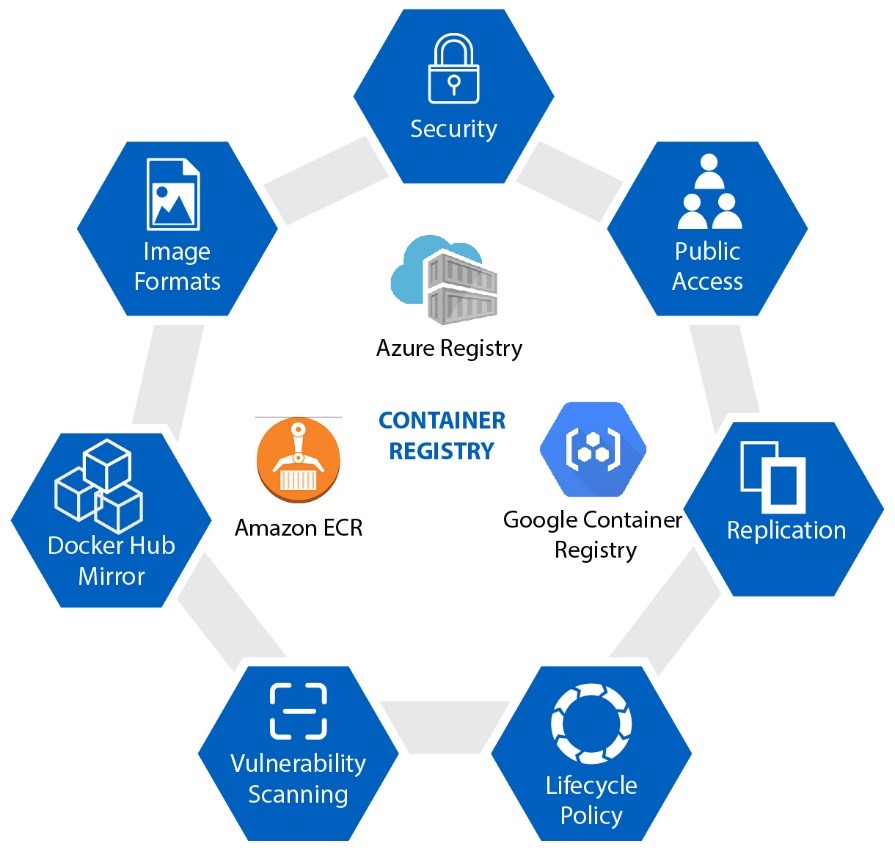 Container Registry is a mechanism for storage and retrieval of Docker container images. AWS, Azure as well as Google Cloud Platform offer this service to build and manage your own private container repositories.