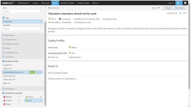 Based on project need, changes can be made in the child profile. E.g. changing severity of certain rules for project. The following screenshot shows how severity of a rule can be changed to info from minor.