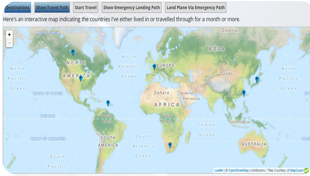 - GeoJSON Layers, Markers (provision of custom markers) and Pop-ups, Pure CSS3 pop-ups and controls (easy designing and animation)