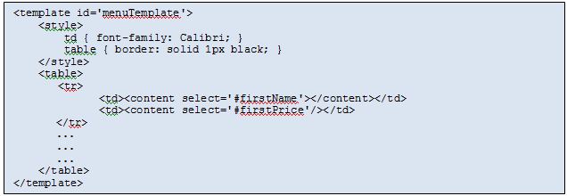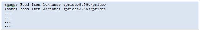 Isn’t it desirable to separate the domain specific data (menu items and their prices) and presentation elements (TD,TR) ? Wouldn’t it be nicer if we could represent the raw information (as below) and somehow, something else would handle the look and feel ?