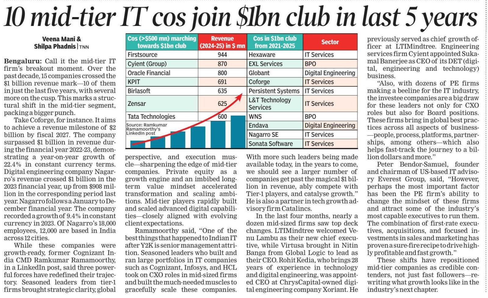 The article underscores how mid-tier IT companies are increasingly bringing in leaders from Tier-1 giants to accelerate transformation and scale. Xoriant, backed by ChrysCapital, exemplifies this approach. With Rohit Kedia, an industry veteran with deep leadership experience at the helm, the company is sharpening its focus on platform engineering, AI-led transformation, and global expansion.