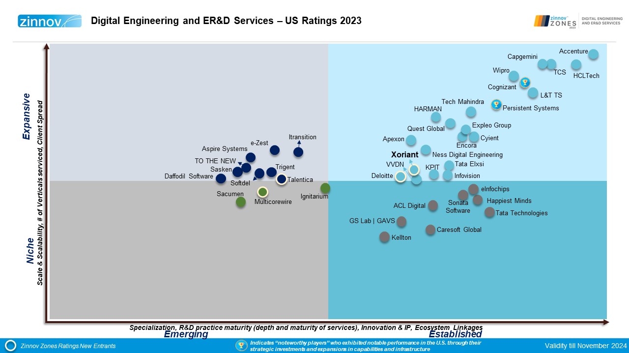 "Building on its strong expertise across key verticals including BFSI, Healthcare, Retail, and Hi-tech, has helped Xoriant anchor its position as an established player in the niche category in the 2023 Zinnov Zones for Digital Engineering and ER&D Services Ratings," said Sidhant Rastogi, Managing Partner at Zinnov. "The firm is also focused on inorganic growth through its acquisition of Thoucentric, which enhanced Xoriant’s ability to drive digital innovation in supply chain, sales and finance functions. Additionally, the launch of the ORIAN generative AI platform, the expansion of its delivery capabilities with a new center in Mumbai, India, and the ability to provide transformative solutions in Data and AI across BFSI and Hi-tech verticals, have empowered Xoriant to drive digital success for clients."